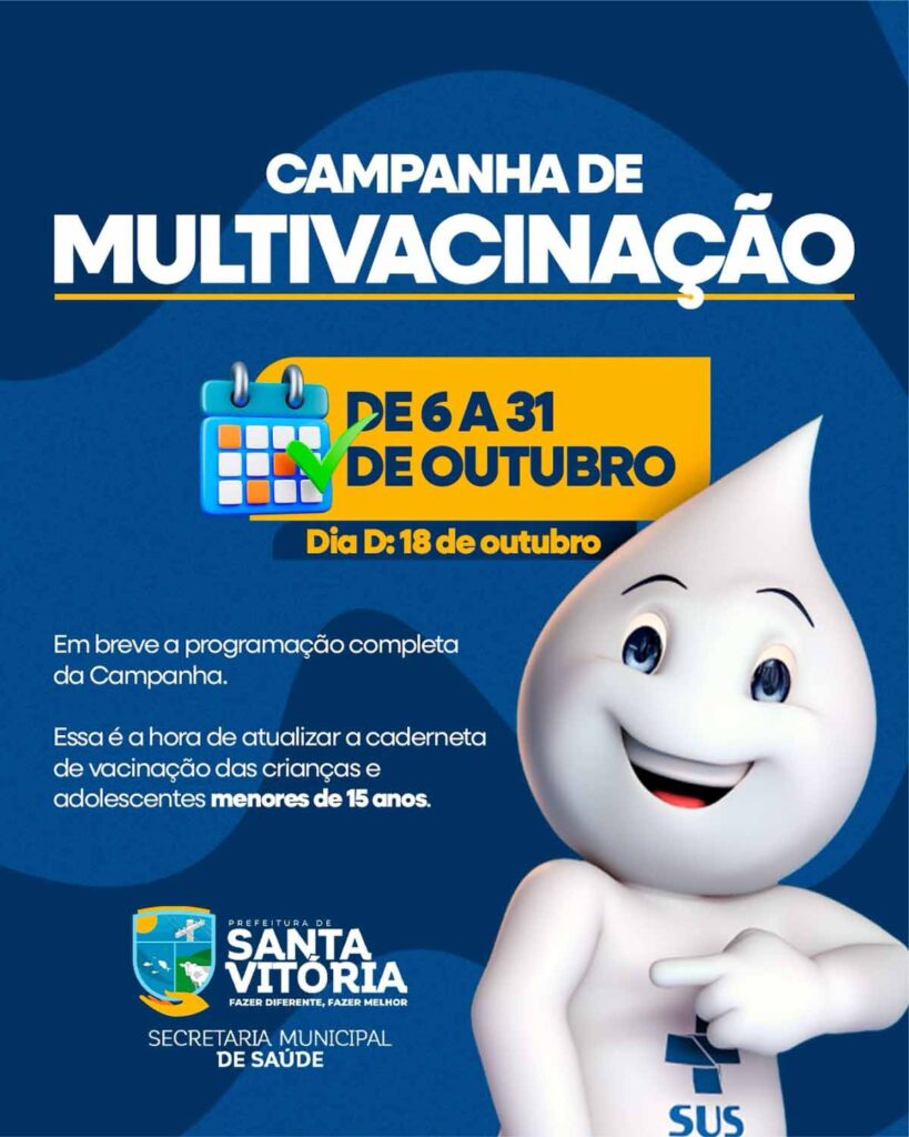 De 6 a 31 de outubro estaremos juntos nessa importante ação pela saúde de nossas crianças e adolescentes menores de 15 anos.